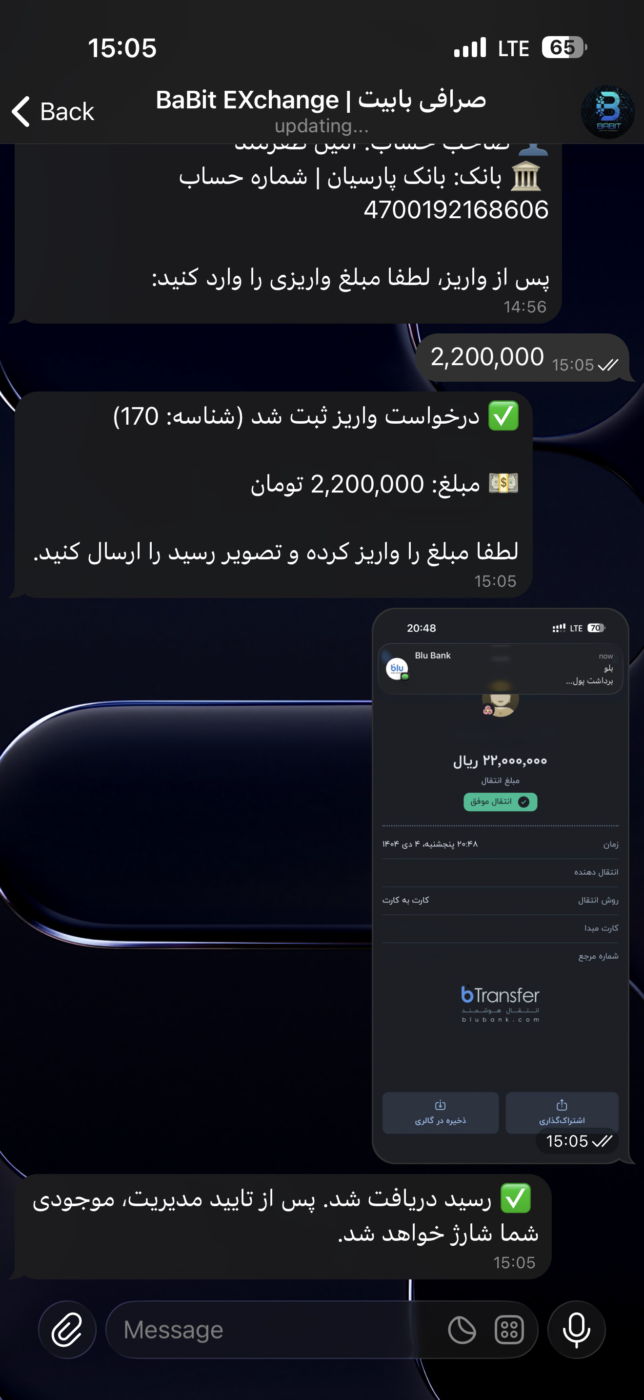 Instant conversion between Toman and Tether at best rates.